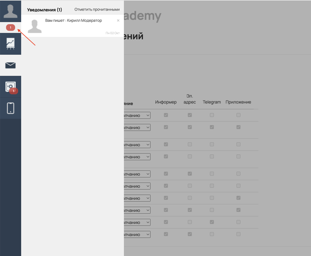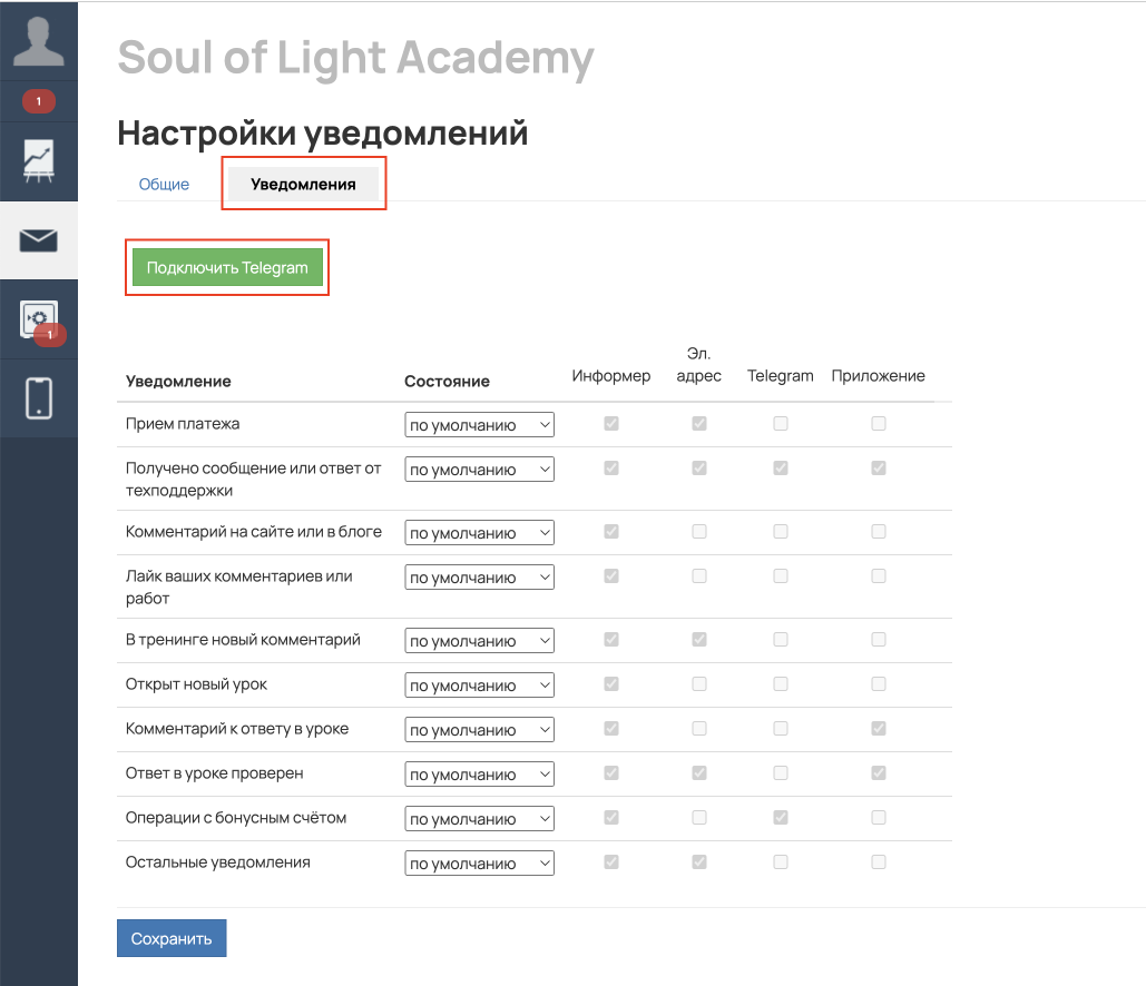 Перейдите в личные настройки уведомлений в разделе «Профиль» — «Уведомления» — вкладка «Уведомления».