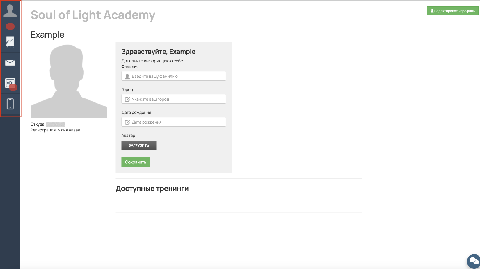 Раздел Профиль