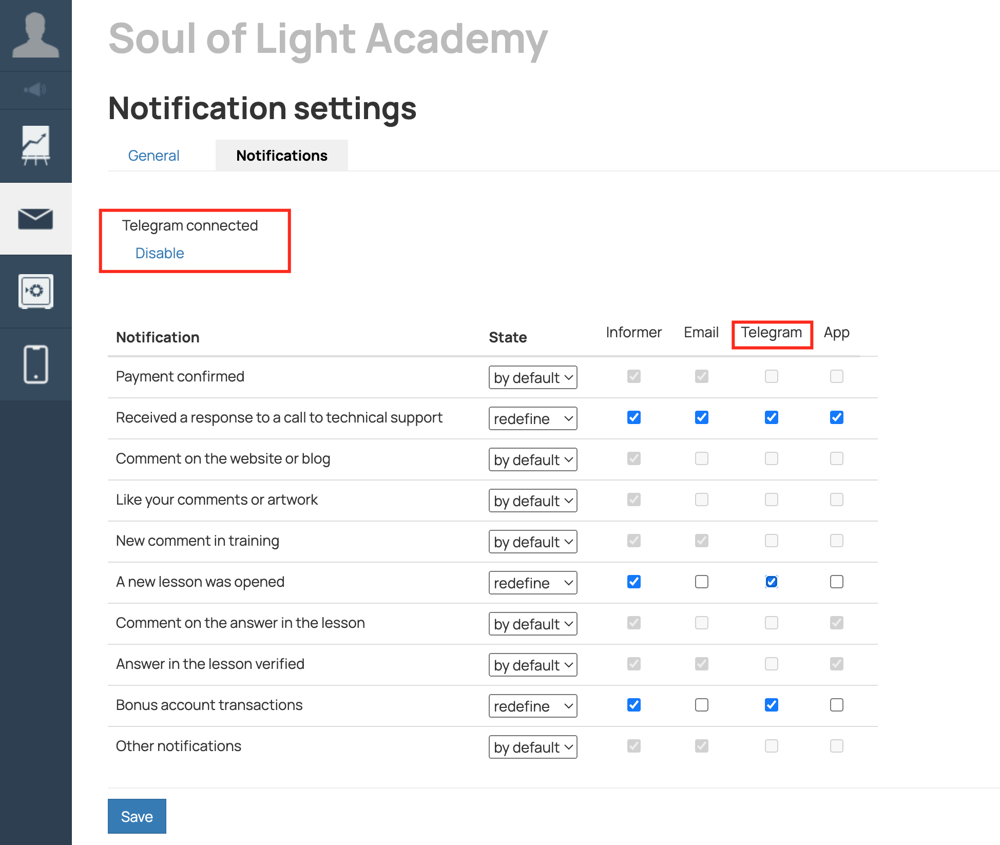 The school uses Telegram as a messaging platform. You should set up notifications through it.