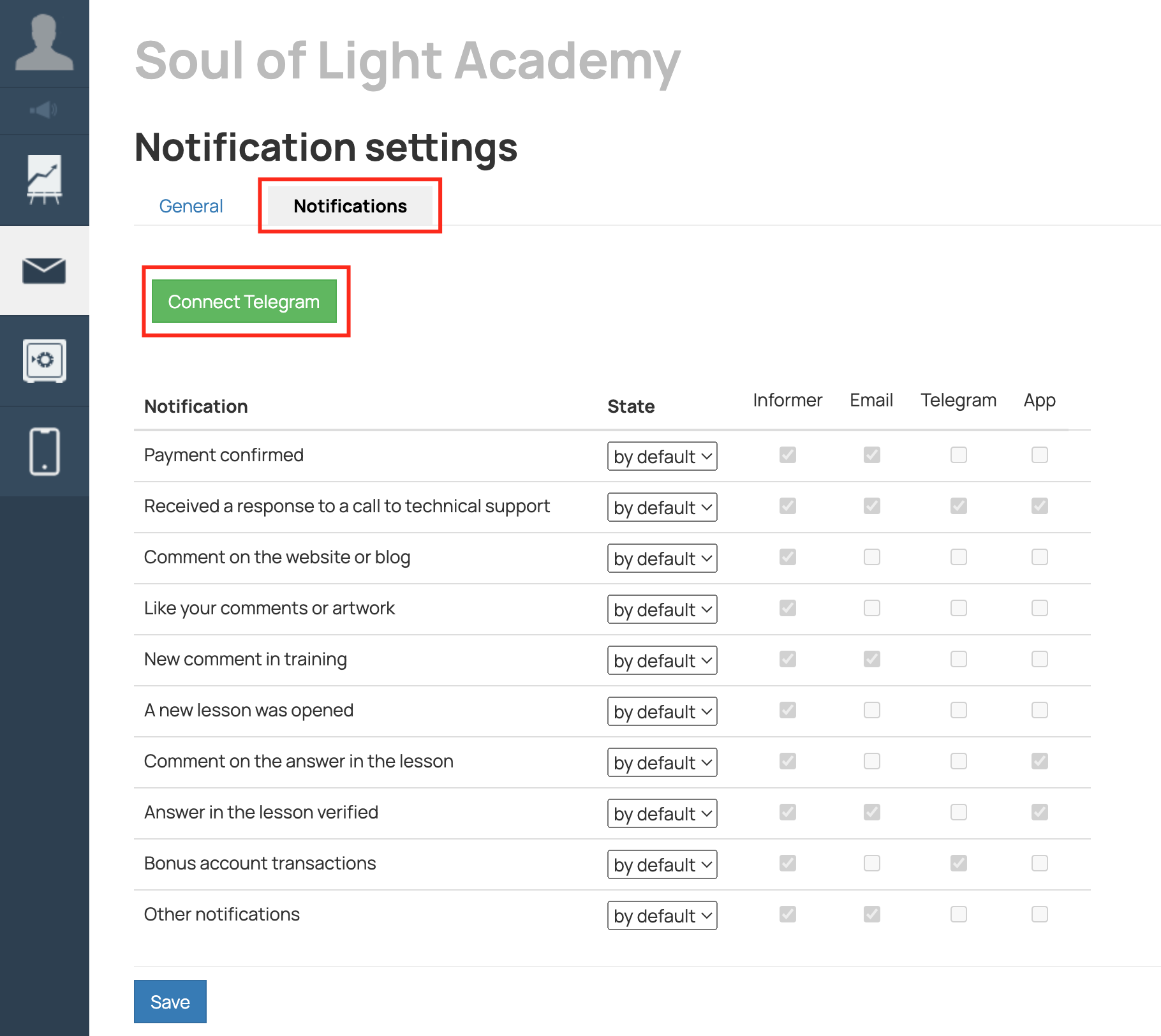 If you haven't connected to the Telegram bot yet, you need to link Telegram to your profile to communicate through the messenger and receive all the relevant information.