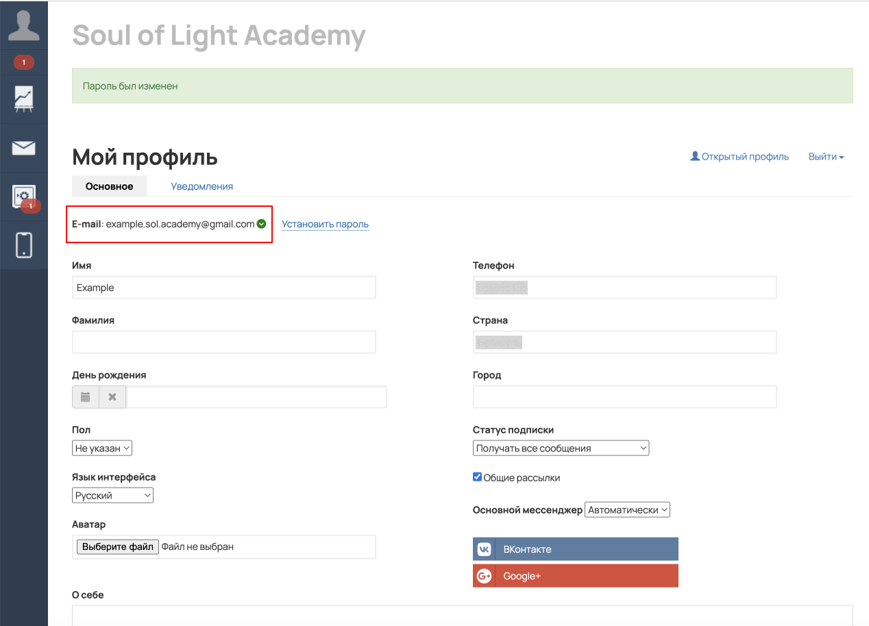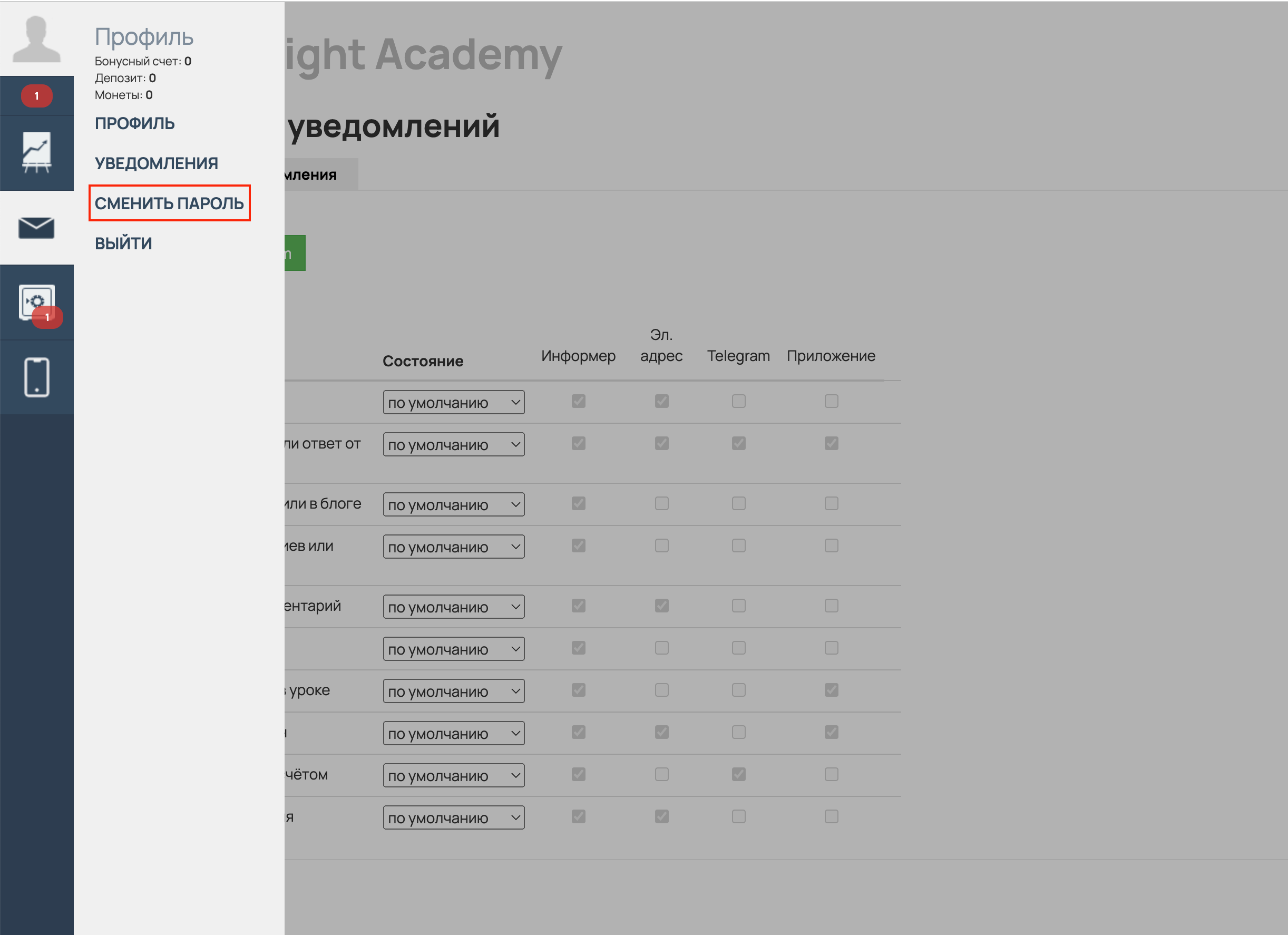 Измените пароль для входа в ваш кабинет для удобства входа и защиты пароля. На странице вашего аккаунта выберите в левом верхнем углу значок - Профиль - Сменить пароль