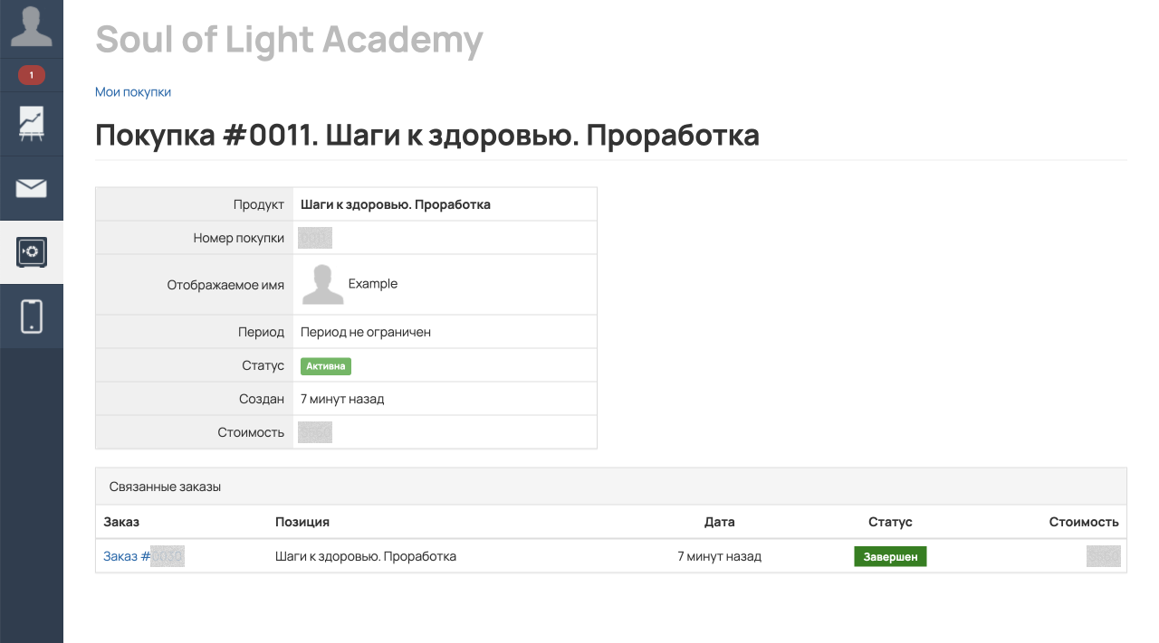 После оплаты заказа (покупки курса) в разделе Информер появится сообщение о получении оплаты.
